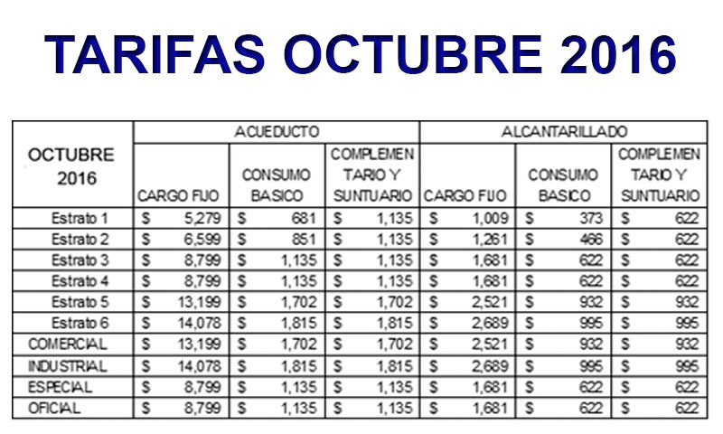 Tarifas OCTUBRE 2016